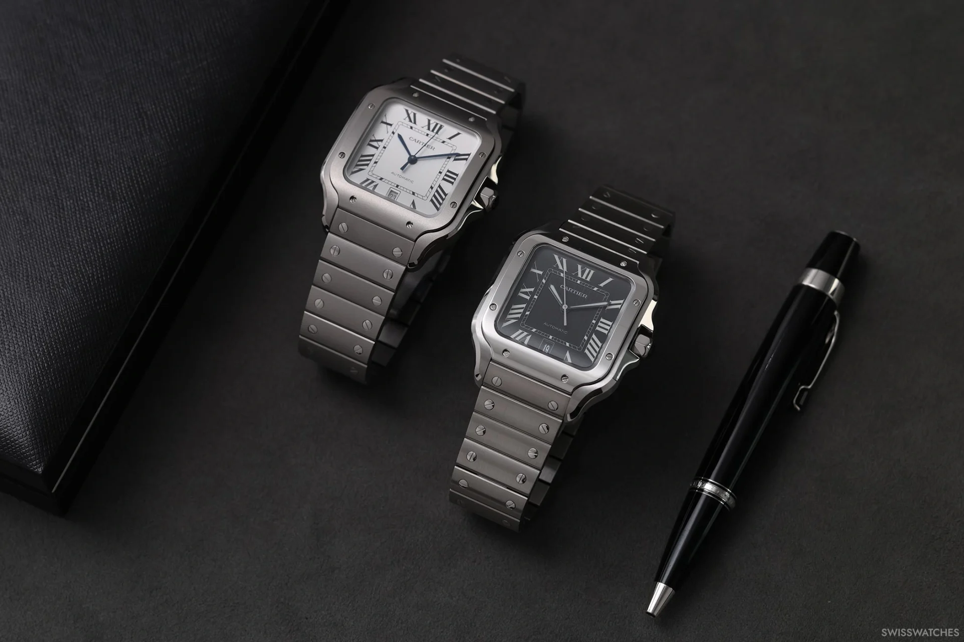A Cartier ampliou a linha Santos com duas edições: uma totalmente em titânio, outra em aço com mostrador preto equipado com numerais e ponteiros luminescentes. Os relógios medem 39,8 mm × 9,3 mm, têm resistência à água de 100 m e adotam o calibre 1847 MC. A edição em aço já pode ser adquirida por US$ 8.650; a versão de titânio chega em novembro por US$ 11.500.