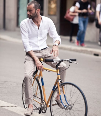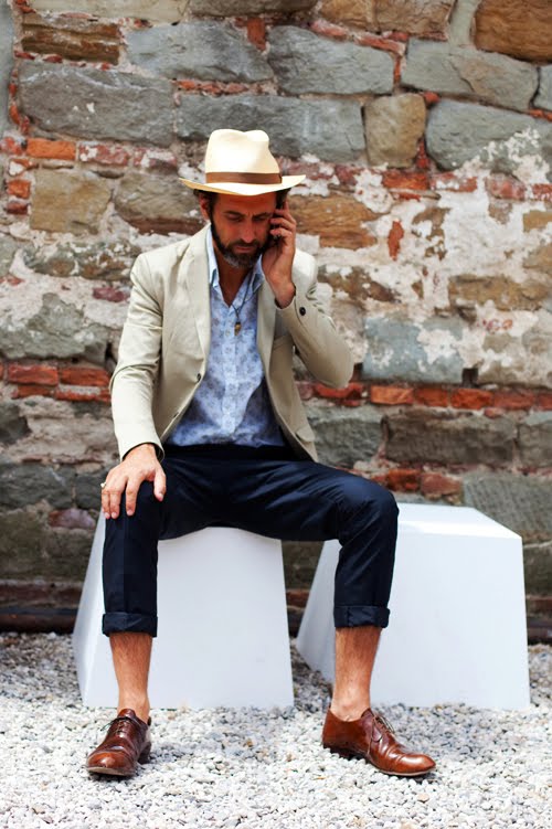 Camisas com bermudas dão um resultado bem interessante. Assim como as calças com a bainha dobrada até o meio da canela para não molhar.