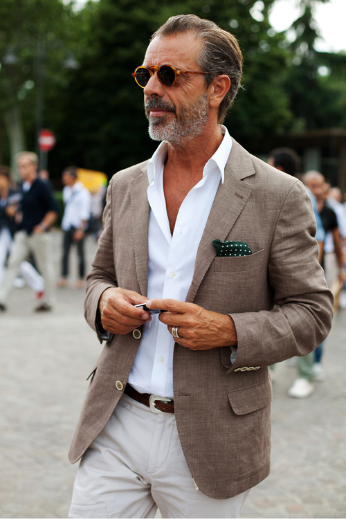 Nos pés, é melhor não complicar muito — um chinelo funciona bem, assim como os docksides e as alpargatas.