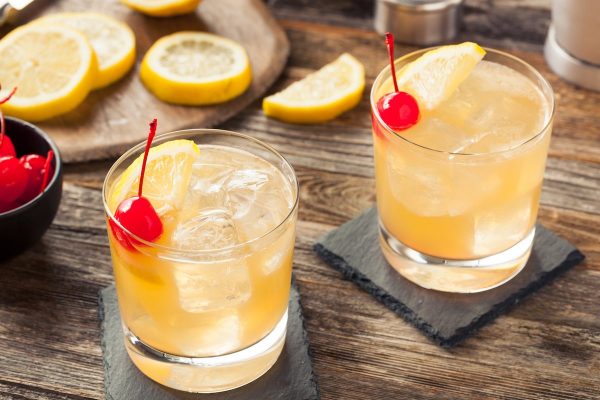- Ingredientes: 60 ml de whisky, 30 ml de suco de limão fresco, 15 ml de xarope de açúcar, Clara de 1 ovo (opcional), Gelo, 1 fatia de limão ou cereja para decorar.