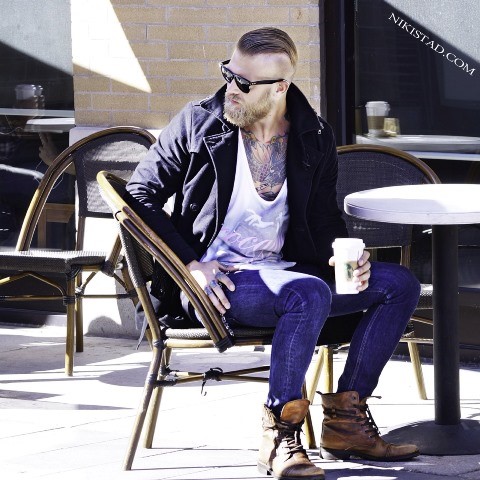 Josh Mario John é um modelo canadense todo tatuado e com um bom gosto enorme na hora de se vestir. Fã das peças mais pesadas e neutras, como jeans e couro, ele parece uma versão do grande Nick Wooster, porém mais jovem e mais motoqueiro, diga-se de passagem.