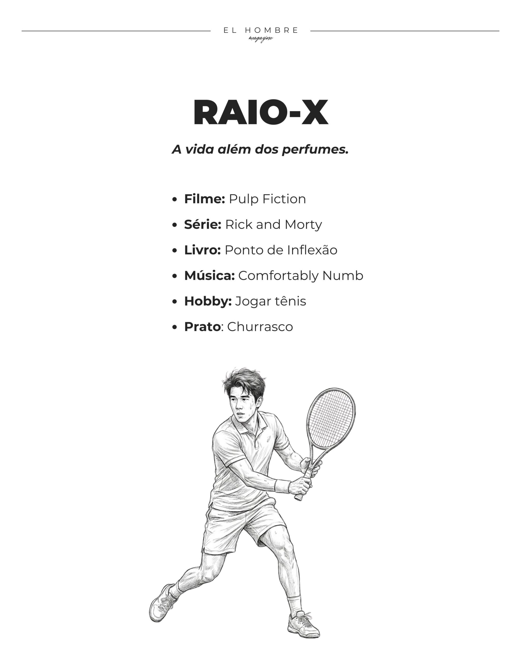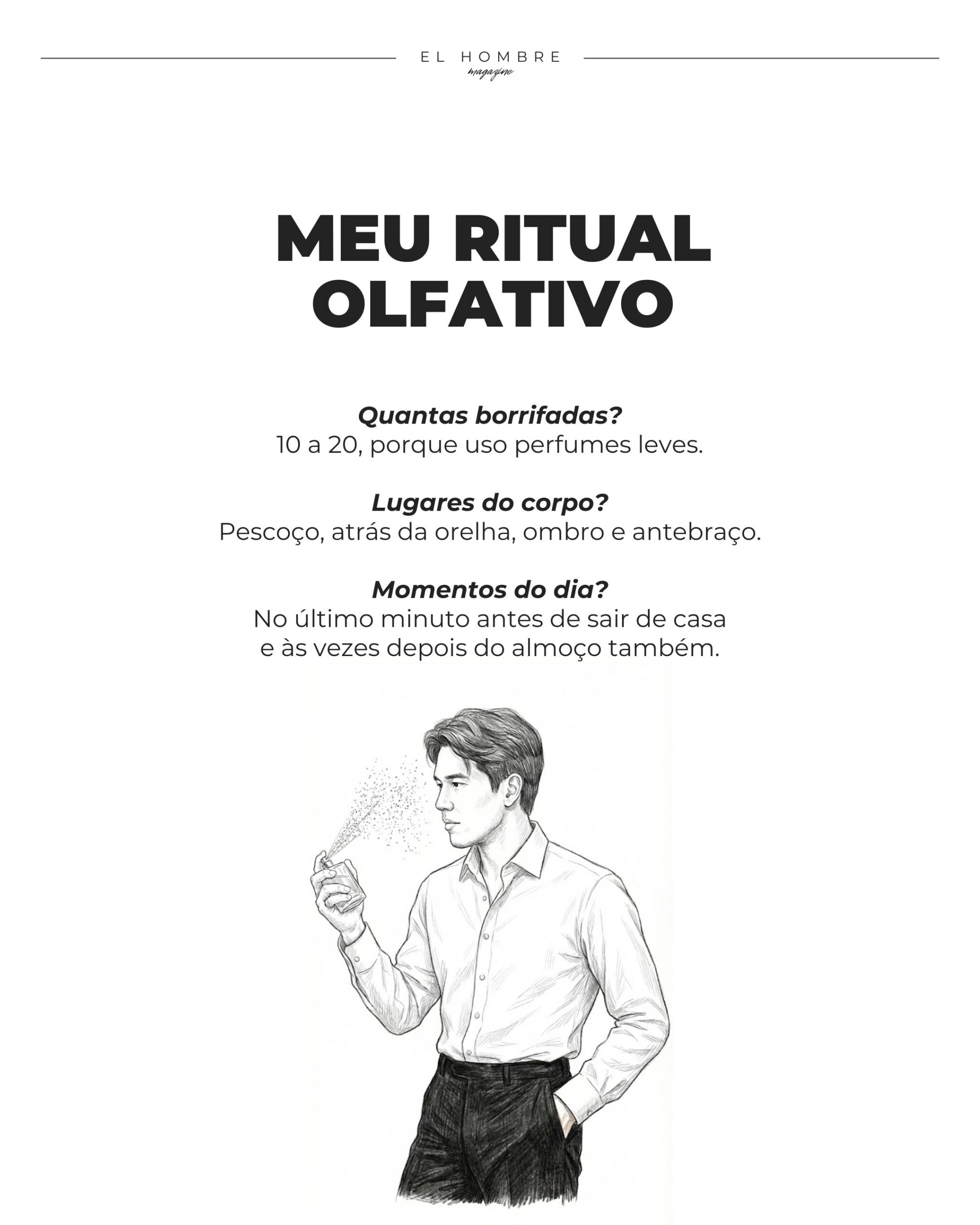 Com porte esbelto, exibe um cabelo digno de capa de revista. O rastro olfativo completa o quadro — fragrâncias notáveis, usadas sem timidez.