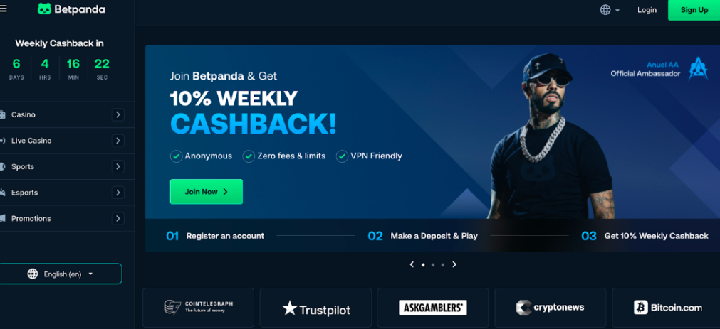 O BetPanda foi lançado em 2023 como um cassino de Bitcoin focado em privacidade, operado pela Star Bright Media S.R.L. na Costa Rica. A plataforma opera sob o modelo de licenciamento comercial da Costa Rica, e não sob licenças tradicionais de jogos. Apesar de ser relativamente novo, o BetPanda atraiu atenção devido ao seu modelo sem KYC e aos tempos de saque consistentemente rápidos de cerca de 10 minutos, segundo relatos de usuários. O BetPanda oferece mais de 6.000 jogos de mais de 70 provedores, incluindo NetEnt, Pragmatic Play, Evolution Gaming, Hacksaw e Spribe. A plataforma possui mais de 190 jogos provably fair, permitindo verificação transparente dos resultados, além de um sportsbook abrangente com grandes ligas e esports. O BetPanda é compatível com VPN e fornece instruções oficiais para acesso anônimo. O registro exige apenas um e-mail e uma senha, sem verificação de identidade para a maioria das transações.