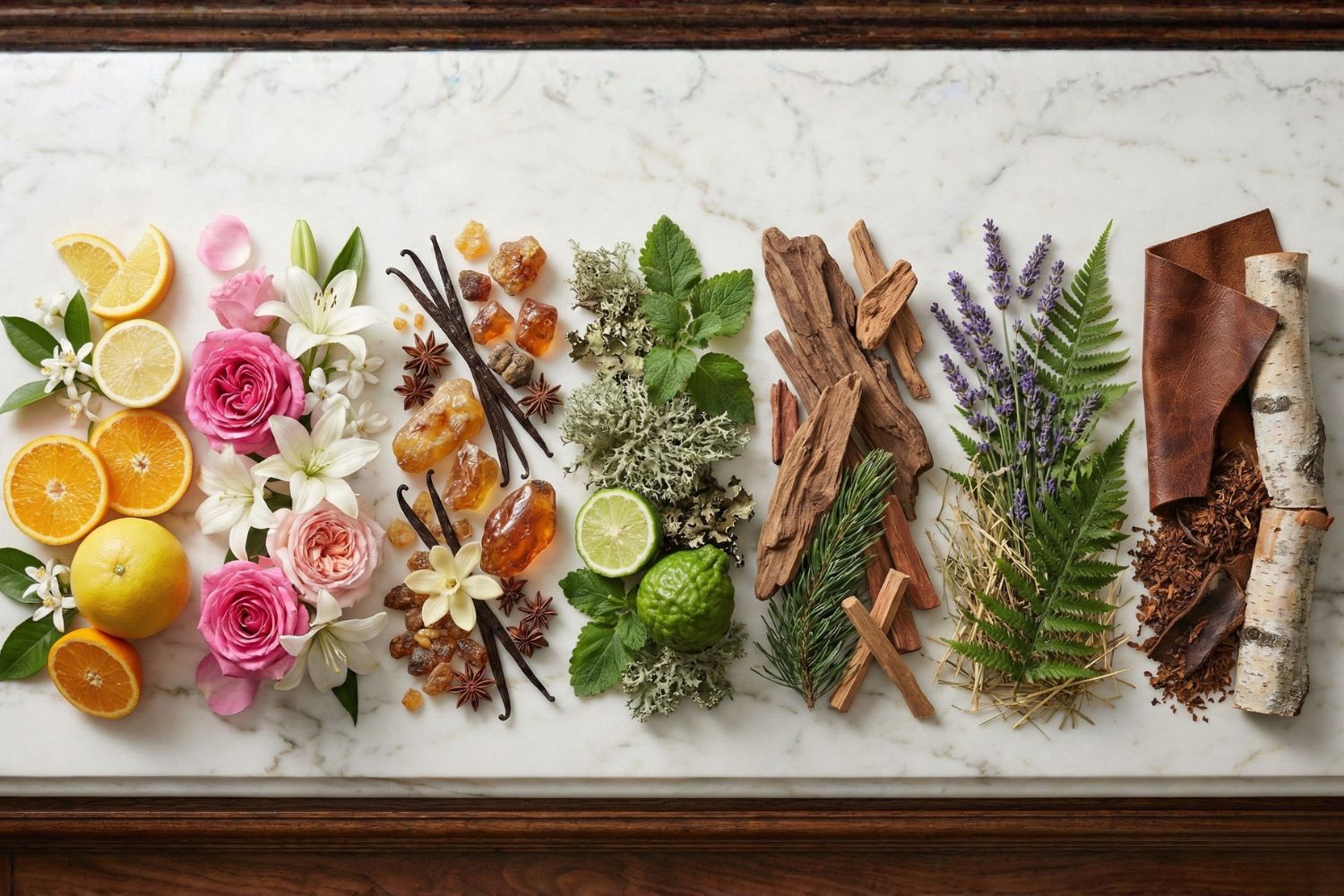 Cada uma dessas categorias representa mais do que um conjunto de notas dominantes. O chipre, por exemplo, possui uma construção olfativa própria, marcada pelo contraste entre frescor cítrico e profundidade musgosa. O fougère, por sua vez, define uma arquitetura aromática específica, e não uma matéria-prima isolada.